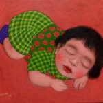 “These series of paintings radiate a sense of full freedom, the melancholy for a lost era, a lost part of the self that we cant have it again now. Delivery into my own childhood memories and life experiences, I built a repertoire of art work full of pathos and fragile reflection. As a child, one is like a free-flying bird without worriers, leading a carefree existence. The lullaby our mother used to sing for us , the folk tales told by our grannies, reminiscing about childhood days brings a smile on our faces. When we grow up, life is bonded with lots of works, responsibility that we hardly have a sound sleep. Those lullaby are gone, sound sleep is just a history now. “